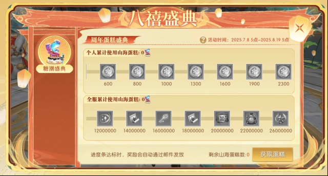 周年慶活動期間,可通過各種活躍活動獲得“山海蛋糕”。