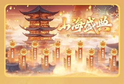軒轅一年一度山海節到來,張燈結彩,喜迎佳節。活動期間,將會開啟八禧盛典、山海異聞錄、山海同游、慶典饋贈、盛典游園、花車巡游、煙火大會、盛典暢釣、天燈祈愿共9個活動。參與活動可獲得專屬獎勵山海蛋糕,開啟山海蛋糕更有概率獲得年度新仙獸夫諸寶寶。