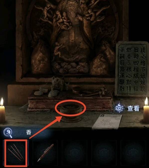 9、把紙放桌面上,插上香,過一段劇情后通關第一章。
