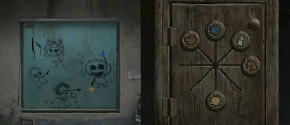2、根據窗上的線索,打開左側柜子,獲得剪紙小人和錦旗。